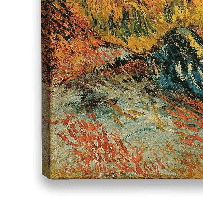Koop Vier zonnebloemen in de kiem gesmoord, Vincent van Gogh als reproductie op canvas, aluminium dibond, (ingelijste) fotoprint, behang en ArtFrame, op maat geprint in Fine-Art kwaliteit.