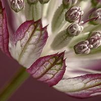 Het paars / fuchsia-roze Zeeuws knoopje (Astrantia Major) dat in het licht staat, met een achtergrond in een donkere paars- bordeauxrood achtig kleur heeft een rustige maar tegelijkertijd spannende uitstraling. Deze donkere kleur van de achtergrond zorgt ervoor dat de lichte delen van het Zeeuws knoopje (Astrantia major) erg opvallen en naar voren lijken te komen. Dit geeft een mooi bijna dramatisch effect. Maar toch staalt het werk iets van rust uit en door de kleuren die dicht bij elkaar liggen wordt het rustig. Het bloemetje is een beetje naar de camera toegedraaid, waardoor je de bloem voornamelijk ziet vanaf de bovenkant, de kant de de "kleine bloemetjes" (de stempels lijken net ook kleine bloemetjes). Door de kadering van dit werk ontstaat er een diagonale lijn (het steeltje) wat eindigt in de blaadjes van het bloemetje!