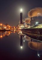 Volle maan boven de suikerfabriek van Vierverlaten, Hoogkerk, Groningen.