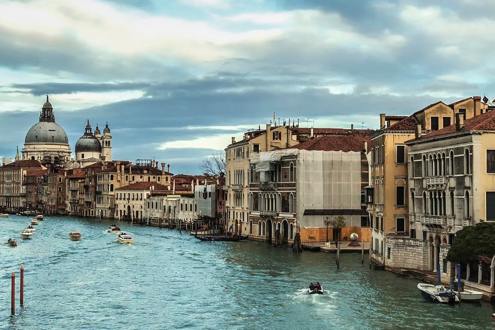 Uitzicht op de Grand Canal in Venetië vanaf de beroemde Rialto brug.