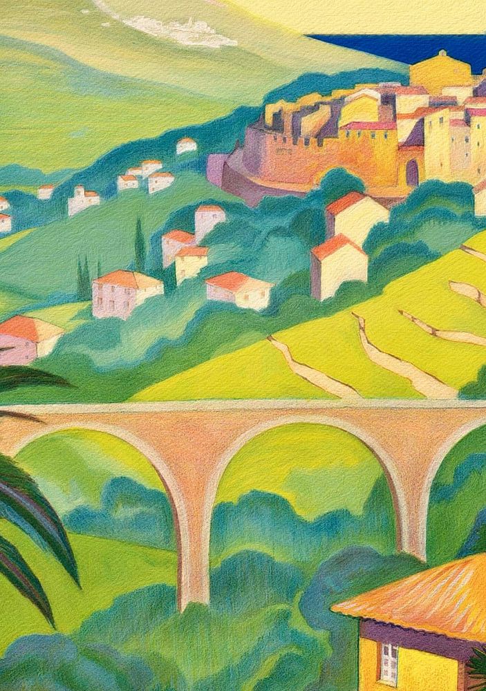 Hang de tijdloze elegantie van de Côte d'Azur aan uw muur met dit idyllische uitzicht op het schilderachtige dorp Vence, nabij Nice.