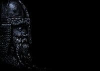 Wit potlood op zwart papier. Het tekenen op zwart papier is een hele uitdaging. Je tekent alleen het licht, eigenlijk net als in werkelijkheid. Ik vind het wel passend voor een historische voorstelling als deze. Vanachter de neusbeschermer kijkt de Viking waakzaam, maar ook ontspannen naar... tja, waar kijkt hij eigenlijk naar?