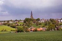 Blik op het Zuid-Limburgse dorp Vijlen vanaf het Vijlenerbos (Heuvelland, Nederland).