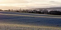 Winterdag in de velden rond Eyserhalte met zicht op kerk van Vijlen in het Limburgse Heuvelland.