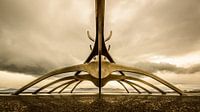 Het beroemde beeld van een Vikingschip van Jon Gunnar Arnason in Reykjavik, IJsland