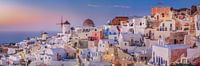 Koop de foto Village Oia op het eiland Santorini in Griekenland. Panorama. van Voss fotografie op canvas, aluminium dibond, (ingelijste) fotoprint, behang en ArtFrame, op maat geprint in Fine-Art kwaliteit.
