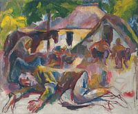 Vilmos Aba-Novák (1894-1941) was een Hongaarse schilder en graficus die wordt beschouwd als een van de belangrijkste kunstenaars van zijn land in de eerste helft van de 20e eeuw. Hij staat bekend om zijn monumentale fresco's, krachtige kleuren en dynamische composities. Aba-Nováks werken combineren traditionele Hongaarse thema's met moderne expressie en beelden vaak religieuze, historische en alledaagse scènes uit. Zijn fresco's sieren kerken en openbare gebouwen in Hongarije en hij was een belangrijke vertegenwoordiger van het Hongaarse modernisme.