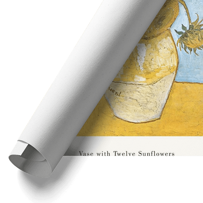 Koop dit schilderij Vincent van Gogh - Vaas met twaalf zonnebloemen van Old Masters als reproductie op canvas, aluminium dibond, (ingelijste) fotoprint, behang en ArtFrame, op maat geprint in Fine-Art kwaliteit.
