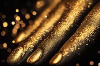 Een intrigerende close-up van gouden glitters die de vingertoppen bedekken, wat een luxueus en sprankelend effect creëert. De gedetailleerde weergave toont elk korreltje goud dat de huid siert, wat het gevoel van elegantie en verfijning versterkt. Perfect voor moderne interieurs die een vleugje glamour zoeken, deze afbeelding roept een gevoel van rijkdom en mysterie op. De gouden glans contrasteert prachtig met de donkere achtergrond, waardoor het oog direct naar de textuur en schittering van de glitters wordt getrokken. Een kunstwerk dat stijl en verfijning aan elke ruimte toevoegt.