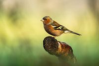 Vink (vogel) op tak tegen een mooie bokeh achtergrond.
