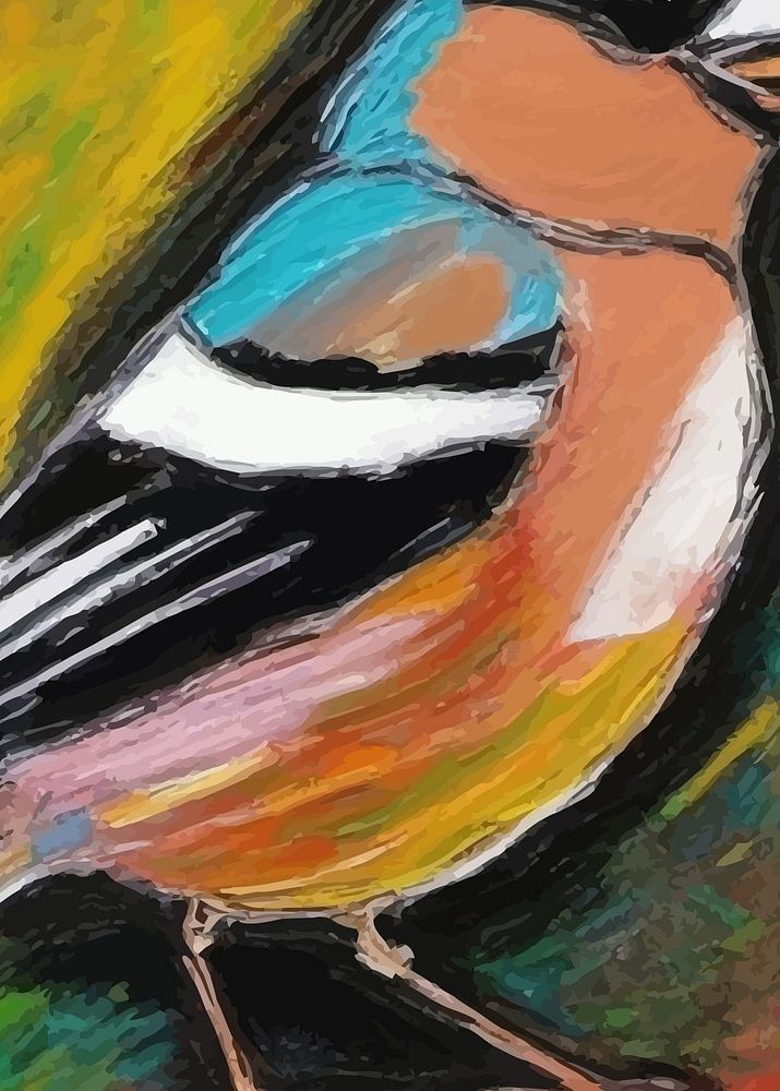 Krachtige streken van roestig oranje, zachte grijstinten en vleugjes blauw geven de levendige persoonlijkheid van de vink weer in dit pastelkleurige werk. De textuurlagen bootsen de levendige aanwezigheid van de vogel na, terwijl een licht abstracte achtergrond de aandacht vestigt op zijn opvallende kleuren. Dit kunstwerk is zowel pittig als elegant en maakt een charmant statement. Het spreekt zowel vogelliefhebbers als kunstliefhebbers aan met zijn balans van kleur en gratie.