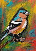 Krachtige streken van roestig oranje, zachte grijstinten en vleugjes blauw geven de levendige persoonlijkheid van de vink weer in dit pastelkleurige werk. De textuurlagen bootsen de levendige aanwezigheid van de vogel na, terwijl een licht abstracte achtergrond de aandacht vestigt op zijn opvallende kleuren. Dit kunstwerk is zowel pittig als elegant en maakt een charmant statement. Het spreekt zowel vogelliefhebbers als kunstliefhebbers aan met zijn balans van kleur en gratie.