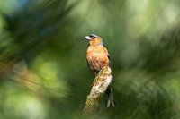 Prachtige vogel (vink) op tak. Op een schitterende natuurlijke bokeh achtegrond. Mooi werk voor aan de muur!