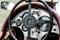 Vintage 1927 Bentley 6.5-Litre Old mother gun Le Mans race auto dashboard met geborsteld aluminium en groot stuurwiel.