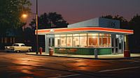 Koop dit digital art kunstwerk Vintage Amerikaanse diner restaurant jaren vijftig van Vlindertuin-Art als reproductie op canvas, aluminium dibond, (ingelijste) fotoprint, behang en ArtFrame, op maat geprint in Fine-Art kwaliteit.
