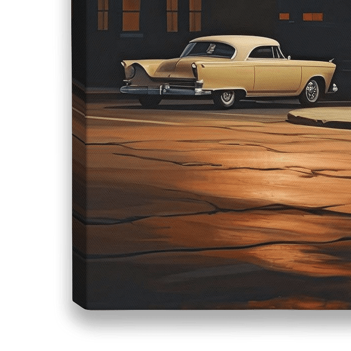 Deze kunstprint vangt op prachtige wijze de betovering van een vintage diner in avondlicht.
