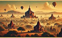 Vintage Bagan Poster, Myanmar van Chromatic Fusion Studio