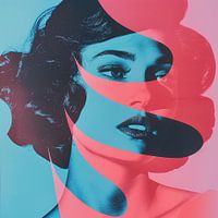Monochrome retro riso print van een mooie vrouw met een blauwe en roze achtergrond in een wervelende vintage stijl. Deze poster combineert tijdloze charme met levendige kleuren en een opvallend design, waardoor het een perfecte keuze is voor een unieke en speelse wanddecoratie. De elegante vorm van de vrouw en de dynamische kleuren creëren samen een boeiend kunstwerk dat zowel stijlvol als opvallend is.