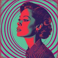 Monochrome retro riso print van een mooie vrouw met een turquoise, paarse en rode achtergrond in een wervelende vintage stijl. Deze poster combineert tijdloze charme met levendige kleuren en een opvallend design, waardoor het een perfecte keuze is voor een unieke en speelse wanddecoratie. De elegante vorm van de vrouw en de dynamische achtergrond creëren samen een boeiend kunstwerk dat zowel stijlvol als opvallend is.