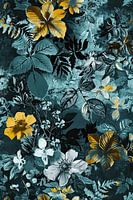 Details: flora, natuur, goud, nachtblauw, bladmotieven, botanisch, elegant, harmonieus, donker, Natuurlijk wonen, Vintage