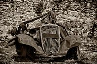 Dit oude autowrak staat in het Franse dorp Oradour sur Glane als restant van een ramp. De Duitsers hebben op 10 juni 1944 (4 dagen na D-Day) dit dorp totaal verwoest. Deze foto is gemaakt op 5 mei 2011.
