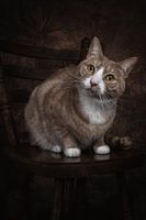 Een prachtig schilderachtig portret in van een creme kleurige kat, geïnspireerd door de stijl van de oude meesters.