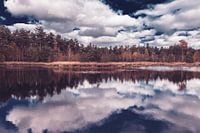 Een reflectie van bomen in een van de vennen in de Oisterwijkse bossen in vintagestijl opgenomen.