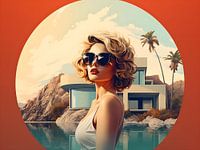 Een betoverende vintage foto toont een blonde vrouw in het hart van Los Angeles. Gehuld in tijdloze kleding, straalt ze de relaxte elegantie uit die zo kenmerkend is voor de stad. Achter haar strekt de iconische huis in typisch LA zich uit, omgeven door de warme gloed van de zonsondergang. De foto vangt zowel de glamour als de laid-back…