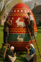 In een veld vol lentezon werkt een dorpsgemeenschap samen aan een gigantisch paasei vol symboliek, traditie en hartverwarmende details.