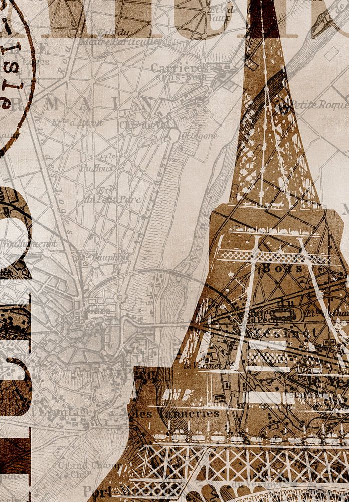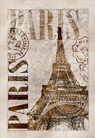 Illustration mit Eiffelturm und Schrift-Elemente im Vintage Stil