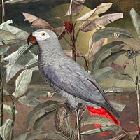 Vintage afbeelding van een grijze roodstaart papegaai.