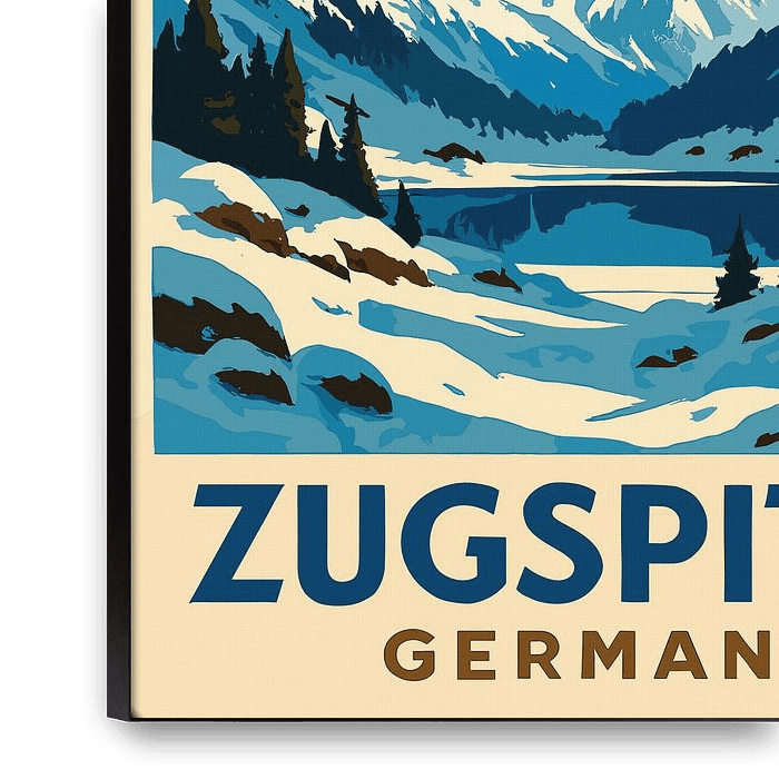 Koop dit landschapskunstwerk Vintage Reizen Zugspitze Duits van Vicky Hanggara als print op canvas, aluminium dibond, (ingelijste) fotoprint, behang en ArtFrame. Voor jou op maat geprint in Fine-Art kwaliteit.