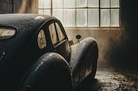 Een prachtig ontwerp van een klassieke vintage auto bedekt met een dun laagje stof, geparkeerd in een verlaten ruimte. Het diffuse licht door de ramen versterkt de sfeer van nostalgie en vervlogen tijden. Deze foto is perfect voor liefhebbers van klassieke auto’s en industriële interieurs. Het ontwerp straalt een mysterieuze en tijdloze…