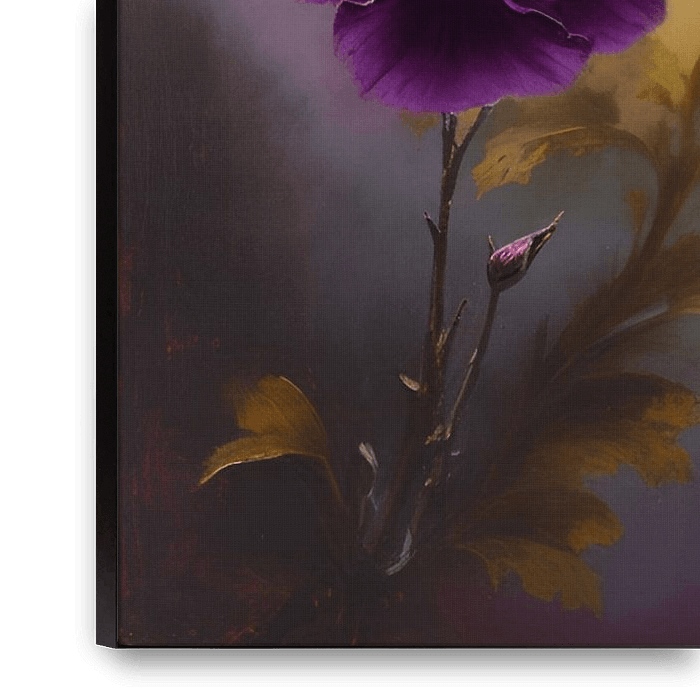 Een digitaal kunstwerk van sierlijke bloemen met een achtergrond in geschilderde kleuren. Voor een botanische en vintage sfeer in je interieur.