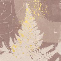Monotype van echte planten of bladeren in vintage retro look. Handgeschilderde gouden penseelstreken, lijnen en texturen. Zachte pastelkleuren.