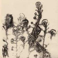 Monotype afdrukken van echte bloemen en planten gemaakt met acrylverf.