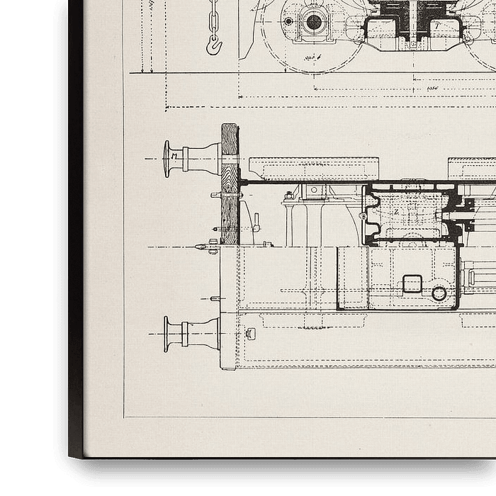 Koop de illustratie Vintage bouwtekening van een stoomlocomotief van Studio Wunderkammer op canvas, aluminium dibond, (ingelijste) fotoprint, behang en ArtFrame, op maat geprint in Fine-Art kwaliteit.
