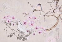 Chioniseriemotief in Aziatische stijl met vogels, orchideeën en perzikbloesems