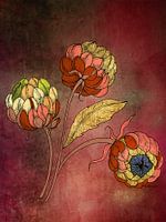 Koop dit abstracte kunstwerk Vintage collage kunst van bloemen met goud accenten van Studio Pieternel op canvas, aluminium dibond, (ingelijste) fotoprint, behang en ArtFrame, op maat geprint in Fine-Art kwaliteit.