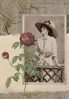 Vintage collage met bloemen en een oude foto. Een oude krant gecombineerd met gescheurd papier, een foto en een afbeelding van bloemen. Deze vintage collage is weer helemaal hip!