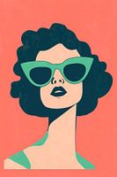 Deze mysterieuze dame straalt elegantie en retro charme uit. Haar opvallende zonnebril en krullende kapsel springen meteen in het oog. Haar sierlijke pose en de warme, delicate achtergrond creëren een betoverende uitstraling. Dit kunstwerk is perfect voor de woonkamer en voegt een vleugje stijl en persoonlijkheid toe aan elke kamer.