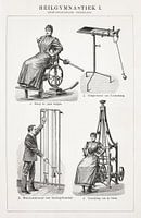 Op deze plaat uit ca. 1900 zien wij een aantal fitness toestellen van ruim honderd jaar oud. Volgens de ondertitel ook wel medicomechanische toestellen genoemd.