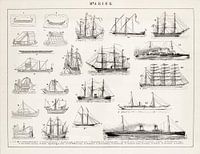 Op deze oude afbeelding zien wij een groot aantal marine vaartuigen van de vroege oudheid tot aan het begin van de twintigste eeuw afgebeeld.
