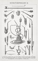 Op deze antieke gravure staan een groot aantal verschillende pijpen voor het roken van tabak afgebeeld. Naast de Nederlandse Goudse pijp ook veel voorbeelden van over de hele wereld.