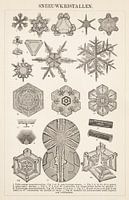 Altijd bijzonder om te zien welke vormen sneeuwkristallen hebben indien sterk vergroot. Op deze antieke gravure uit begin 20ste. eeuw hebben ze de meest voorkomende sneeuwkristallen en ijskristallen afgebeeld.