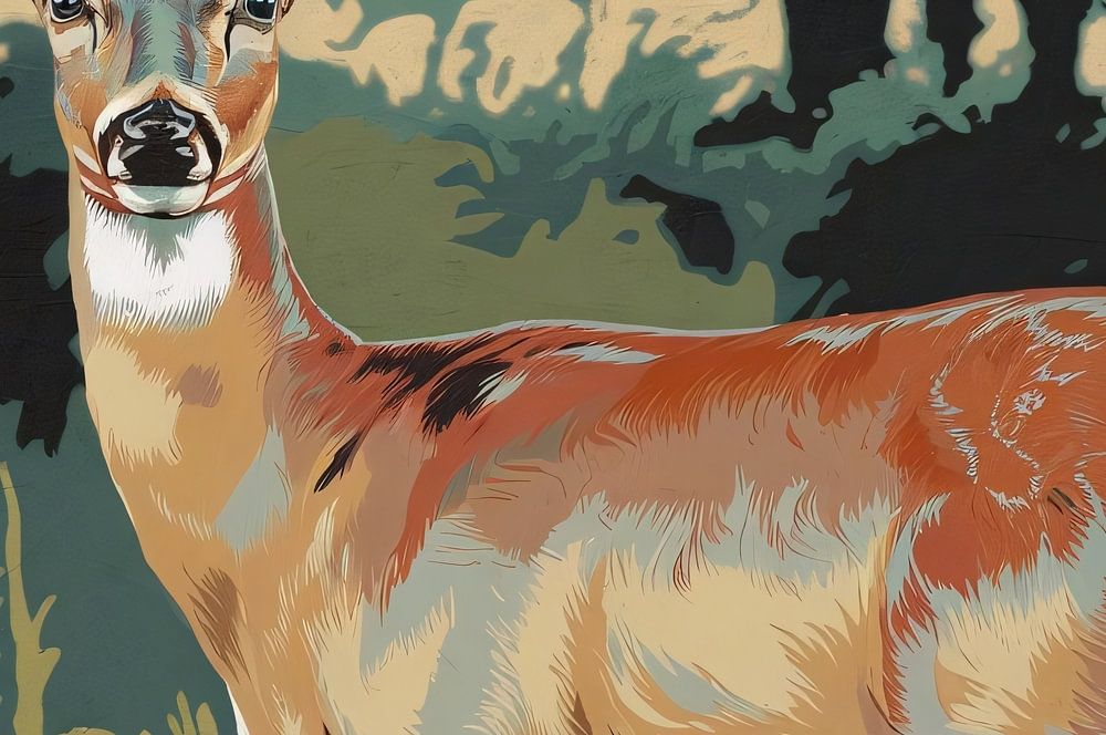 Dit unieke ontwerp vangt de elegantie en rust van een hert in een serene bosrijke omgeving, verwerkt in een digitale art deco-stijl. Met een warm kleurenpalet van aardse tinten brengt het een natuurlijke sfeer in iedere ruimte. Perfect voor liefhebbers van dieren en natuur die een vleugje stijl en moderniteit aan hun interieur willen toevoegen. Dit schilderij past in diverse interieurstijlen, of het nu gaat om een rustige woonkamer of een gezellige eetkamer. De verfijnde lijnen en het subtiele kleurgebruik geven een vintage uitstraling, ideaal voor een uitnodigende en rustgevende ambiance.