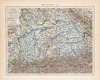 Op deze antieke kaart uit ca. 1900 staat het Koninkrijk Beieren afgebeeld naast een deel van de provincie Beieren. De kaart is in kleur met een schaal van 1:1.250.000