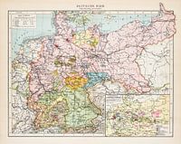 Op deze antieke kaart uit ca. 1900 staat het toenmalig Duitse Rijk afgebeeld. Het is een staatkundige kaart in kleur met een schaal van 1:4.500.000.
