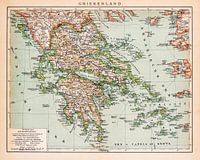 Een antieke kaart uit ca. 1900 van Griekenland. De kaart is in kleur.