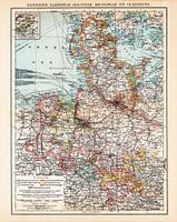 Op deze antieke kaart uit ca. 1900 zien wij de Duitse deelstaten Hannover, Sleeswijk-Holstein, Brunswijk en Oldenburg afgebeeld. De kaart is in kleur met een schaal van 1:1.750.000.